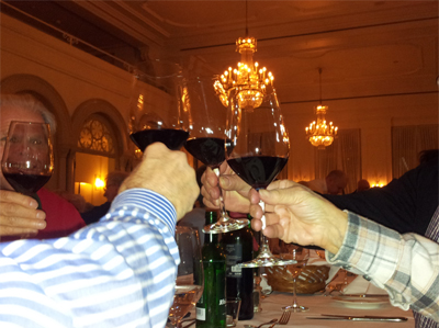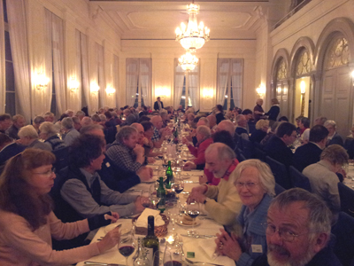 | A l'apéritif dans une cossue salle du Musée du Petit-Klingental, sous le regard des quatre évangélistes en sculptures plus grandes que nature, la chaude ambiance créée par le duo SMEH au vibra-phone et à la batterie, ainsi que par le groupe vocal Globe-Trotters (-Girls !) nous entraîna sur les " sentiers de la joie ", avant qu'on passe au dîner finement servi. | ||